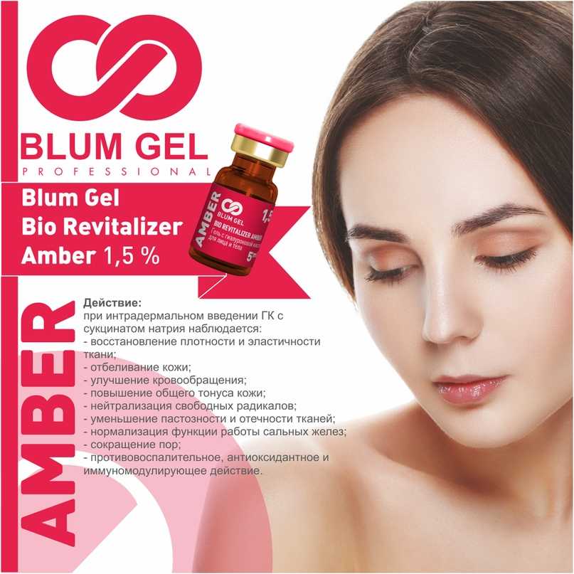 Биоревитализант BLUM GEL AMBER 1,5% отлично устраняет следы старения, возрастную пигментацию на лице, убирает отечность, дряблость тканей. За счет щелочной среды борется с высыпаниями, прыщами, себореей, повышает иммунитет кожи. Уплотняет эпидермис, осветляет его, выравнивает тон и сокращает морщины.