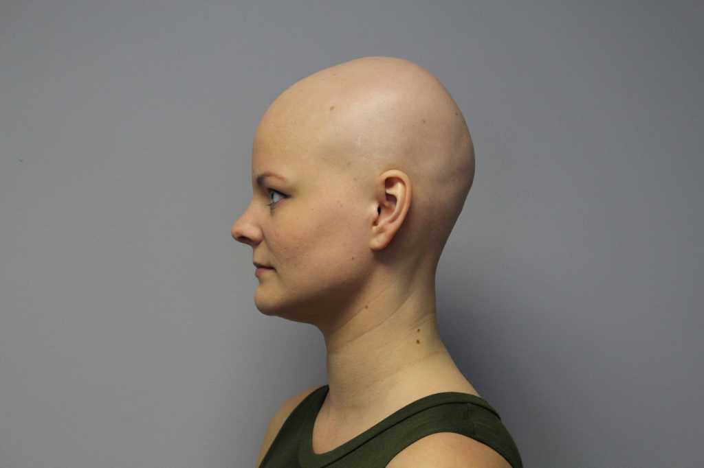 Облысение. Голова лысеет полностью. При этой форме также возможна потеря ресниц, бровей.