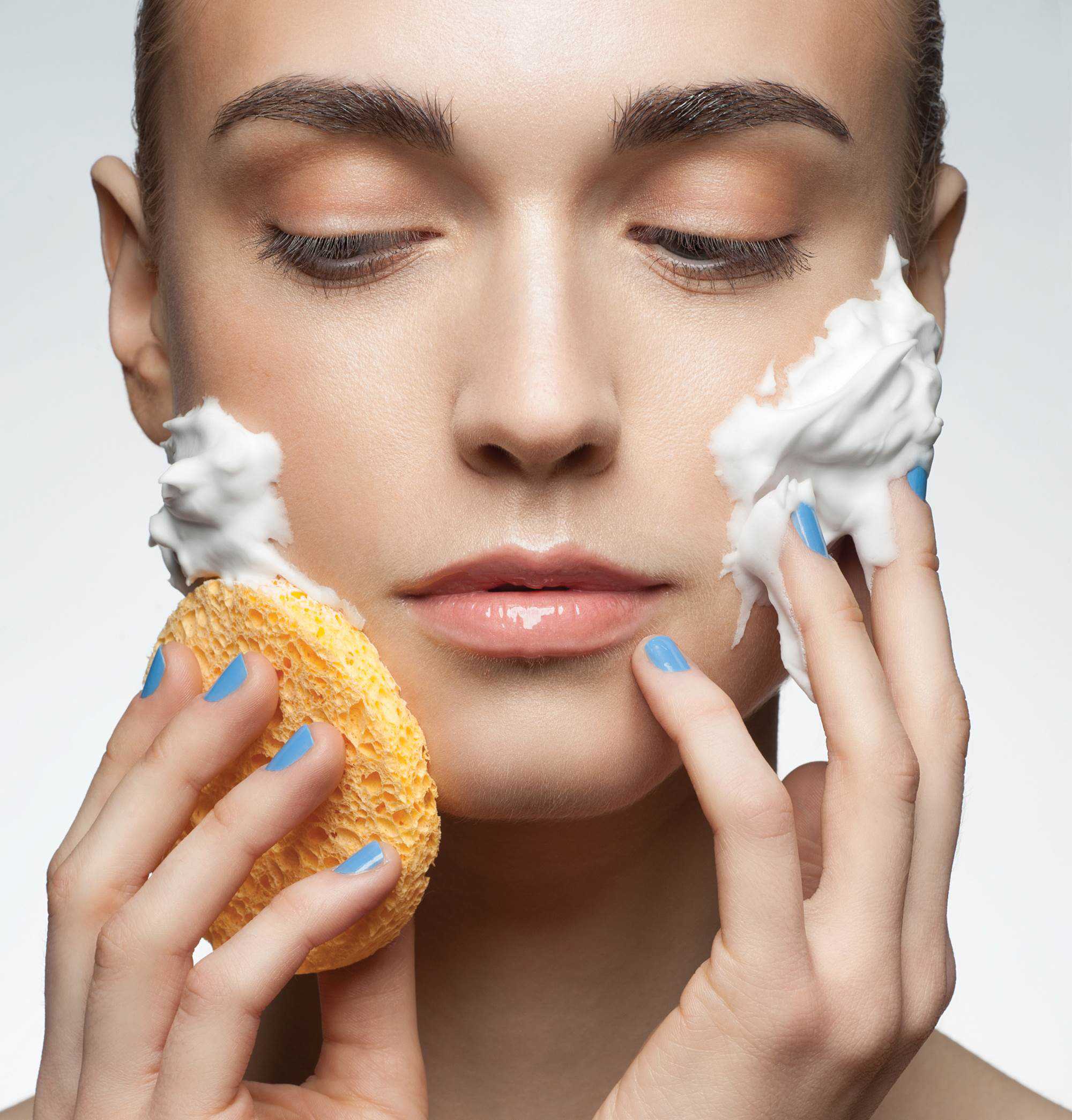 - намыльте лицо средством для умывания так, чтобы появилась пена;