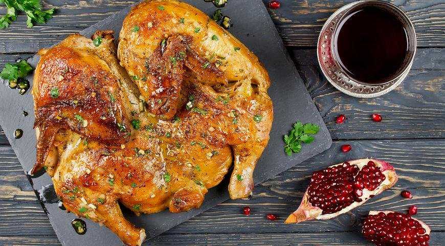 Цыпленка тщательно помыть, просушить, разрезать вдоль грудинки и развернуть как книжку. Положить тушку на разделочную доску, сверху накрыть пищевой пленкой и немножко отбить, чтобы он стал плоским. Мелко нарубить чеснок. Со всех сторон натереть цыпленка смесью из перца, соли и чеснока. Жарим на разогретой с оливковым маслом сковороде цыпленка под прессом (например, кастрюлей подходящего диаметра, наполненной водой) по 15 минут с каждой стороны. Выдавить сок из лимона, смешать его с мелконарубленным чесноком. Выложить цыпленка на тарелку, сбрызнуть лимонным соусом.Цыпленок табака разнообразит пикантным вкусом меню диеты людей с первой группой крови.