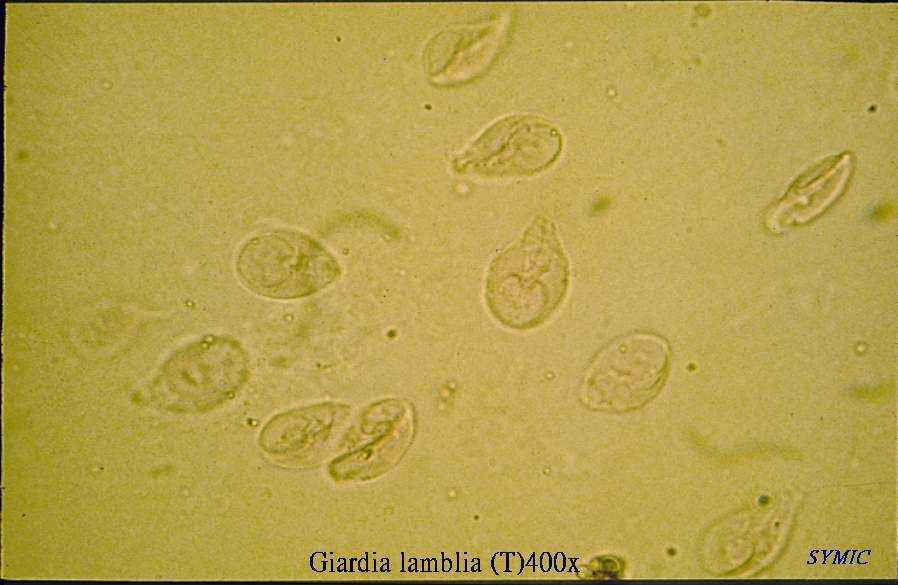 Lamblia intestinalis (лямблии) относится к классу жгутиковых. Лямблии паразитируют в тонкой кишке, преимущественно в двенадцатиперстной кишке, а также в жёлчном пузыре. Существование трофозоитов (вегетативная форма лямблий) требует жидкой среды, поэтому, попадая в толстую кишку, лямблии инцистируются, и в кале обнаруживают только цисты. Лишь при профузной диарее или после действия слабительных в испражнениях удаётся обнаружить вегетативные формы.