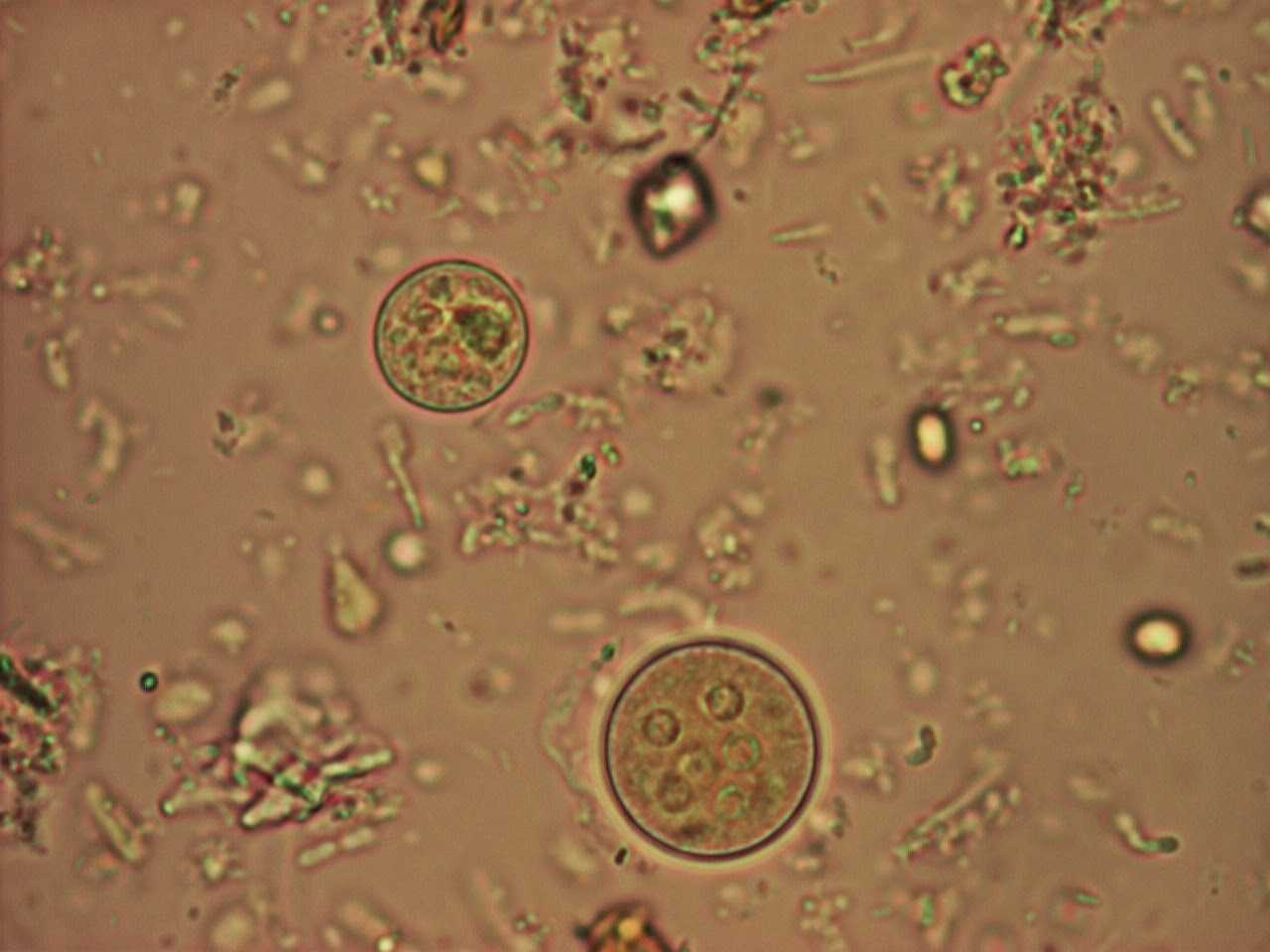 В фекалиях можно выявить 20 видов простейших (8 патогенных и условно-патогенных и 12 комменсалов). Простейшие кишечника обитают в тонкой или толстой кишках в стадии трофозоита и/или цисты. Они относятся к одной из 4 групп: амёб, жгутиковых, реснитчатых и кокцидий. Основными и наиболее значимыми простейшими, вызывающими заболевания у человека, являются лямблии, дизентерийная амёба и балантидий.