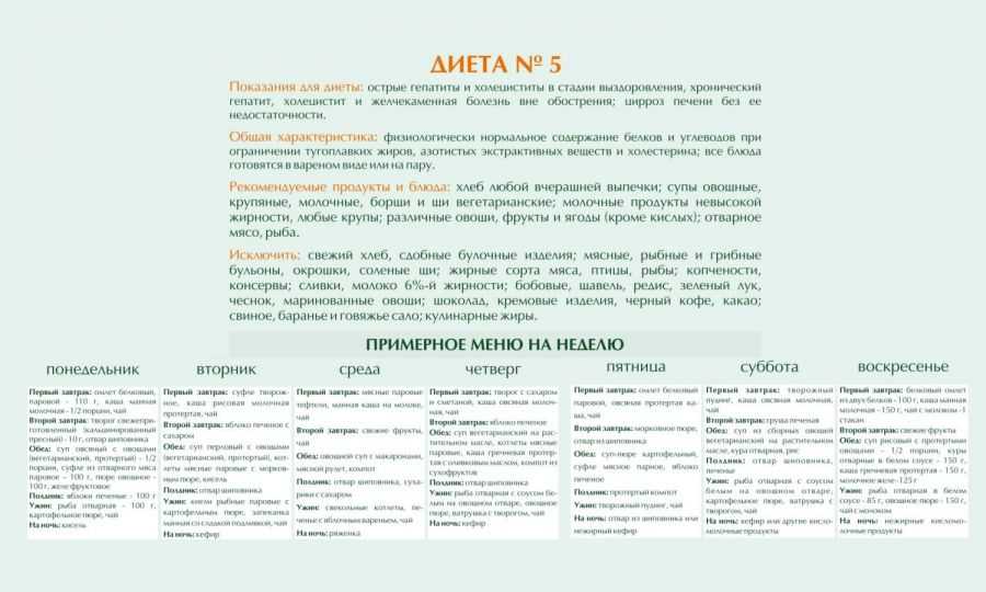 Примерное меню диеты №5