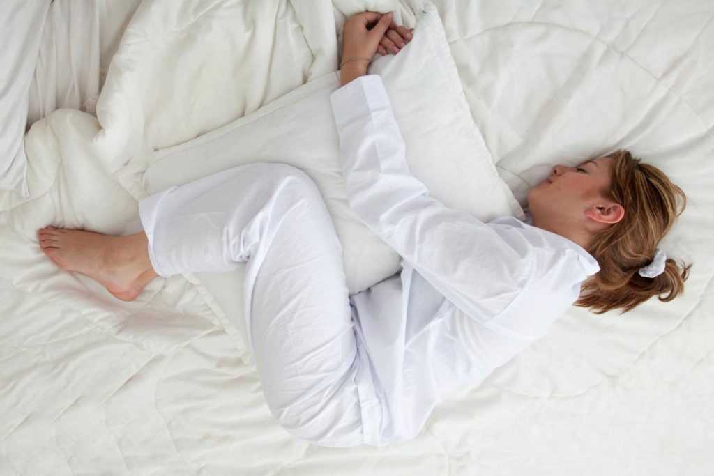 - готовясь ко сну, согните ноги в коленях и положите подушку между ног;