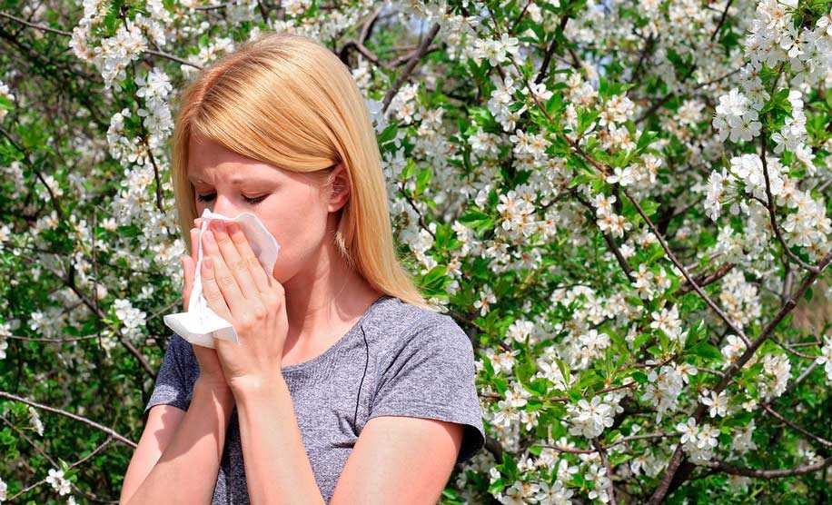 Самый распространенный вид аллергии — поллиноз, или сезонный аллергический риноконъюнктивит. В народе его также называют «сенная лихорадка». Поллиноз возникает всегда в одно и то же время года и является реакцией организма на цветение некоторых видов растений. Это могут быть деревья (береза, ольха, липа, тополь), злаковые (ячмень, рожь, овес, пшеница), сорные растения (амброзия, лебеда, полынь). Проявления аллергии на цветение — покраснение кожи вокруг глаз, сильный насморк, различные дерматиты, конъюнктивиты, першение в горле, кашель, иногда вплоть до приступов астмы. Нередко признаки поллиноза путают с проявлениями ОРВИ и не сразу обращаются к врачу, пытаясь лечиться совсем другими препаратами. На отличие может указать отсутствие температуры, которой при сезонном риноконъюнктивите не бывает либо же повышение составляет несколько десятых градуса.