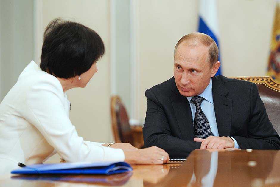 Главный врач Центра детской онкологии имени Дмитрия Рогачева Галина Новичкова и президент РФ Владимир Путин