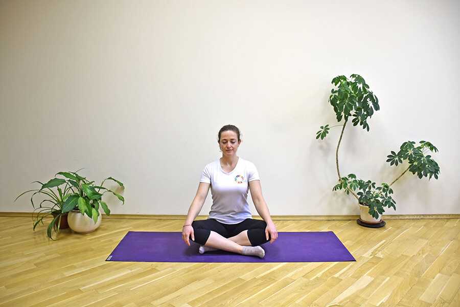 Примите удобное положение сидя на полу, скрестив ноги (или сядьте на стул). Удерживайте спину в прямом положении. Закройте глаза, расслабьтесь и постепенно переходите на глубокое дыхание. Сконцентрируйтесь на своем дыхании, стараясь отбросить все мысли и не сосредотачиваясь на проблемах. Оставайтесь в этом положении в течение 5–10 минут или более, чтобы расслабиться и очистить свой разум.