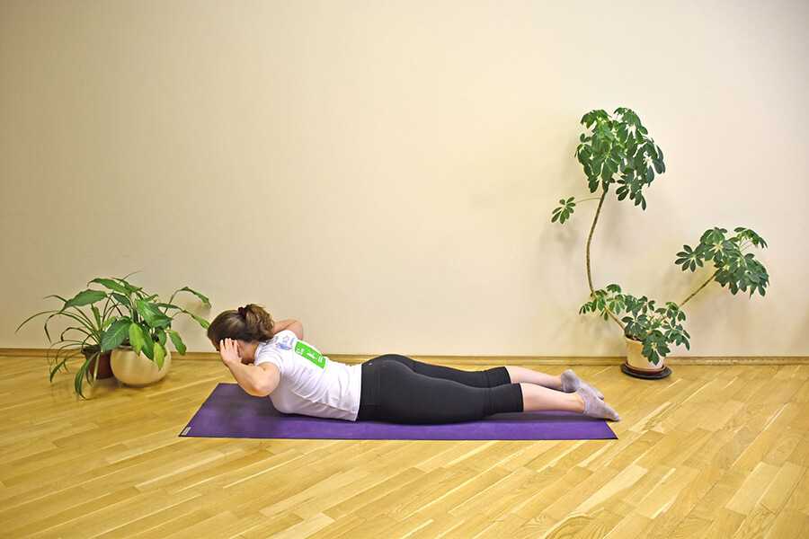 Прикоснитесь к ушам кончиками пальцев и поднимите верхнюю часть корпуса, удерживая ноги на полу. Опустите верхнюю часть корпуса. Выполняйте это упражнение 10–15 раз (или более), делая перерывы по 30–60 секунд и повторяя цикл до 5 раз. Это упражнение способствует укреплению мышц спины.